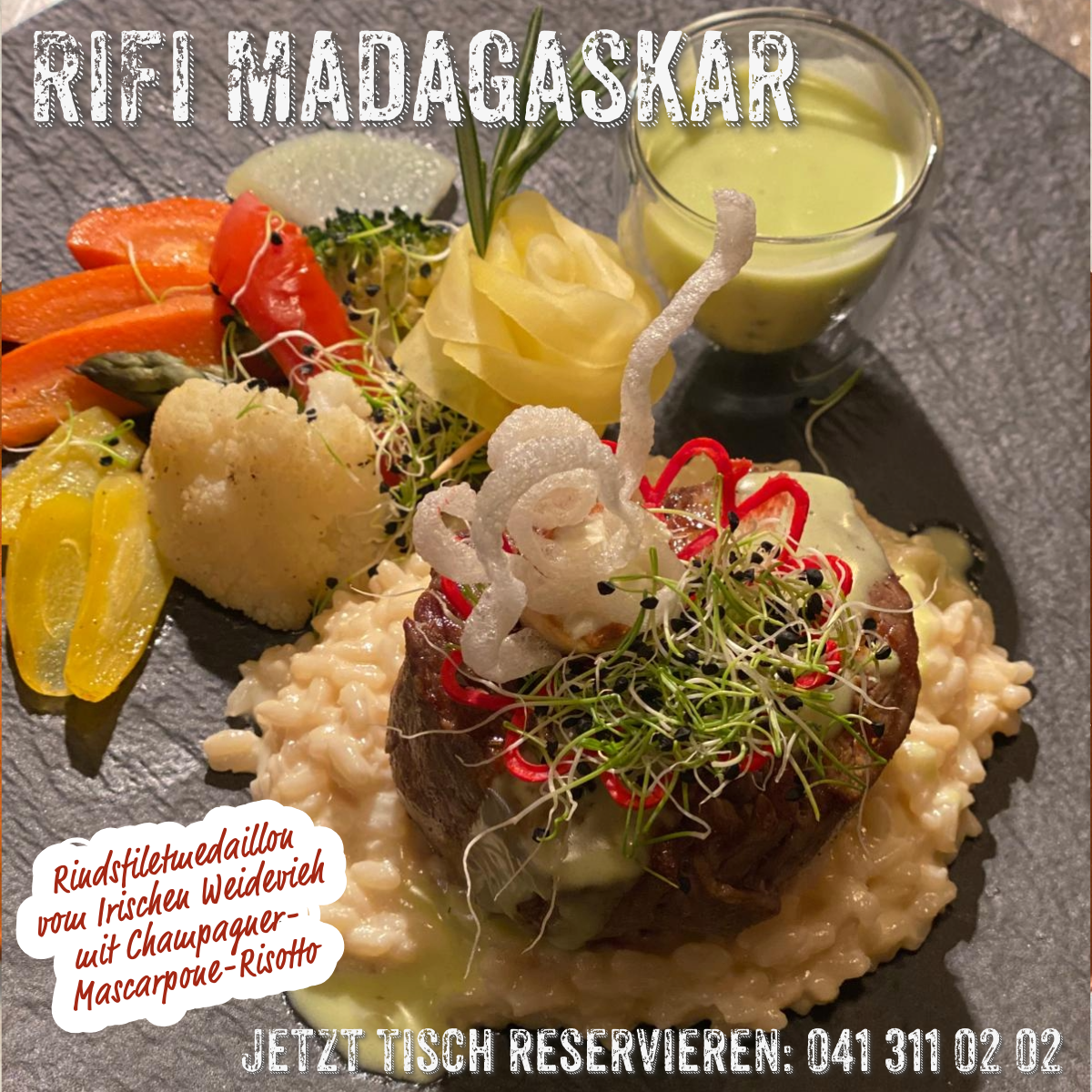 Rindsfiletmedaillon vom Irischen Weidevieh an Pfeffer-Rahm-Sauce vom grünen Madagaskarpfeffer mit Champagner-Mascarpone-Risotto….mhhh soooo fein!